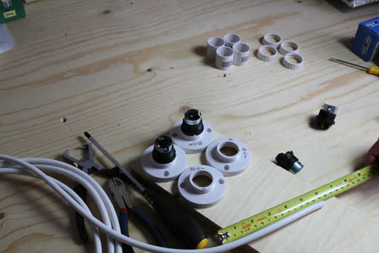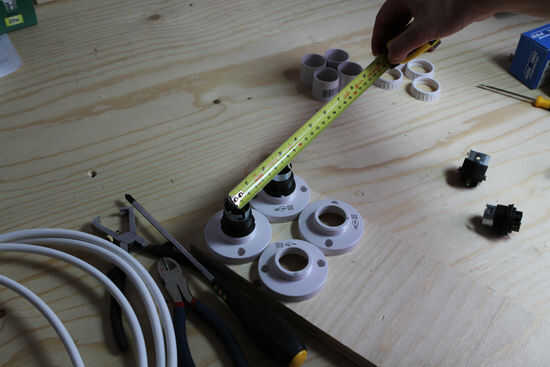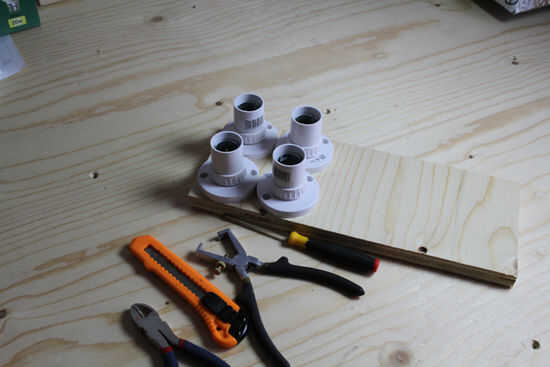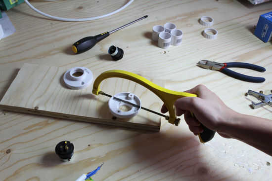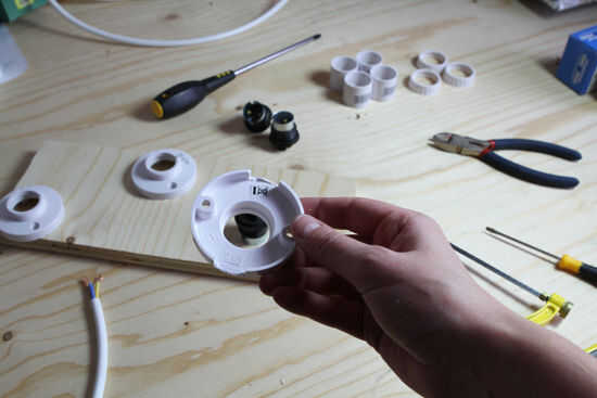 Los accesorios que estoy usando tienen un montaje 'falda' que es necesario recortar para que cuando se unen a la tabla de madera se sientan plana.
