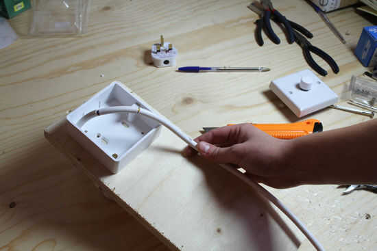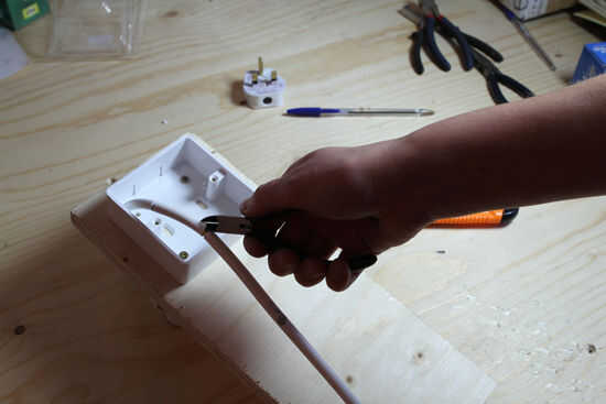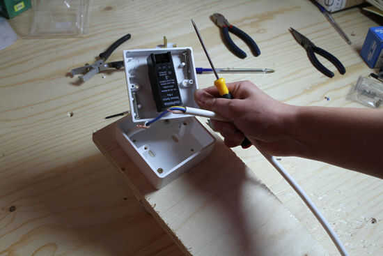 Conecte el extremo que irá al enchufe en 'C' y el que va a las luces en 'L1'