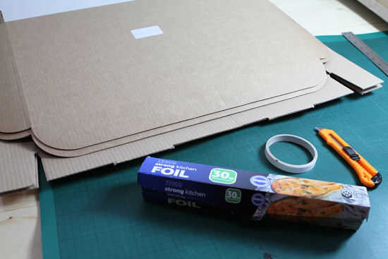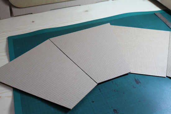 Cortar 4 formas de trapecio (trapecio), el extremo pequeño debe ser el mismo ancho que la huella de la luminaria. Hice el tamaño mío 130mm en la parte inferior, 300mm en la parte superior y 300mm de longitud.