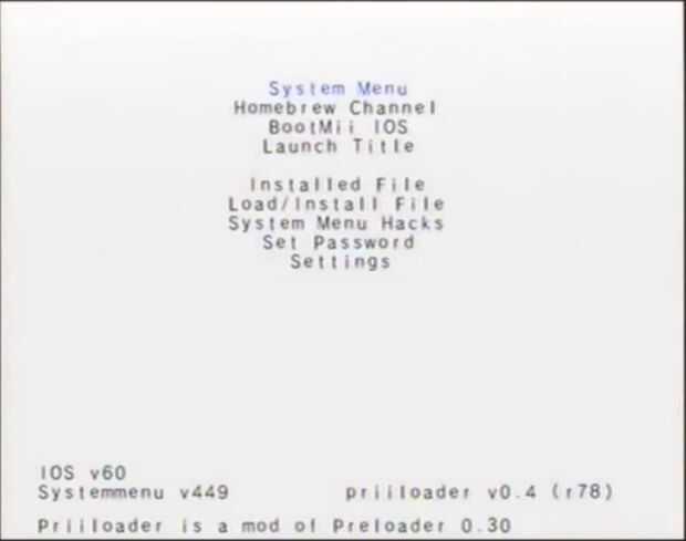 ADVERTENCIA: Esta es una versión parcheado sistema de menú, ejecutando en una versión parchada cios60. Nunca reemplazar cios60 v54321 con ios60-6174. Hacerlo será ladrillo tu wii si se actualiza de Nintendo. Nunca actualización de Nintendo, no de la suciedad hasta cios60 v54321. Estáis avisados.