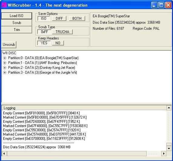 Lo que hace el WiiScrubber es básicamente elimina la "basura" que fabricantes para que el juego alcance el espacio estándar de 4,2 GB... algunos juegos como Wii sports son sólo 720 MB!