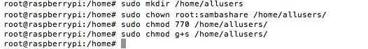 Puede utilizar la tarjeta SD o un disco duro externo para compartir tu fecha por lo que una vez que haya tomado esa decisión creará una carpeta llamada allusers que proporcionará un directorio que puede utilizar para compartir datos entre usuarios. En nuestro siguiente ejemplo, utilizaremos un disco duro externo para mantener el directorio compartido. Para utiliza el comando /home/allusers y duro externo unidad /media/usbhdd camino a nuestros procedimientos de instalación para instalar un disco duro externo. Ejecutar los siguientes comandos para lograrlo.