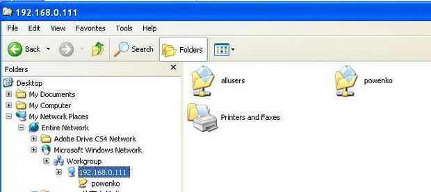 En su PC con Windows puede utilizar explorador de archivos para mis sitios de red para seleccionar el servidor de archivos de frambuesa Pi debe ser similar a este \\raspberrypi\powenko que el nombre de powenko sería cualquier nombre usted establecido previamente. Si usted todavía no puede encontrar el servidor de frambuesa Pi a través de mis sitios de red, puede utilizar el navegador para acceder a la ubicación de la frambuesa pi IP y nombre de usuario. Por ejemplo en la figura 5-21 hemos entrado \\ 192.168.0.111\powenko en barra de direcciones de IE.