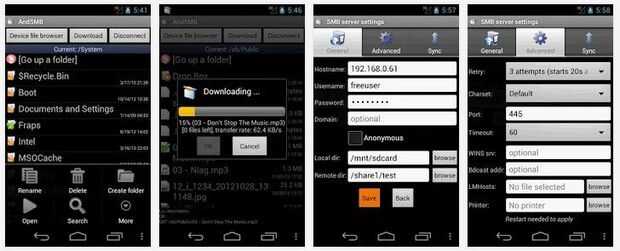 En la plataforma Android se puede instalar la aplicación AndSMB para que pueda conectar fácilmente a su servidor de archivos de Raspberry Pi.