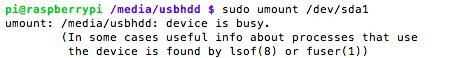 formato, asegúrese de que su disco duro los datos ha sido respaldados, evitan errores, por favor poner el otro ser el primero en tirar lejos el disco o apagar la máquina frambuesa Pi y a través de las siguientes instrucciones de confirman que desea formatear el disco duro tiene umount y siga su situación real de la / dev / sda1 ajustar nombre de dispositivo de arranque de la máquina real.