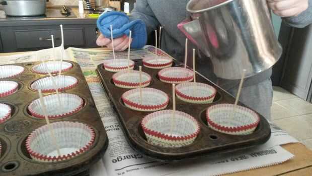 Paso 5: Verter la soya en los moldes