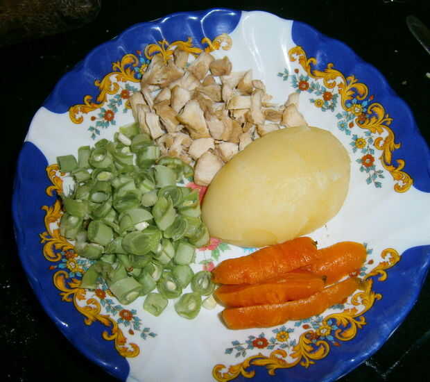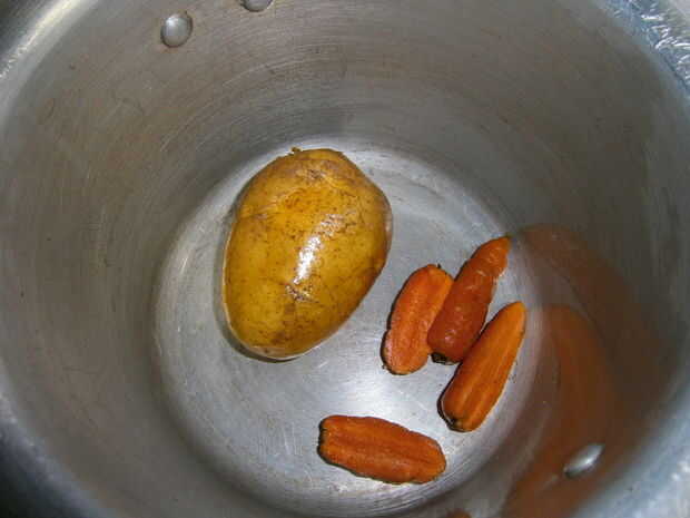 Una vez que está cocida la patata y la zanahoria, del puré.