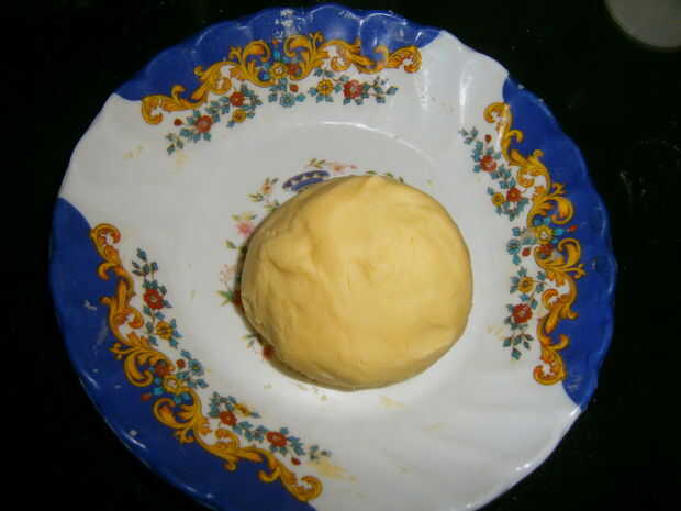 Agregar agua fría suficiente para formar una bola. Reunir en una bola.