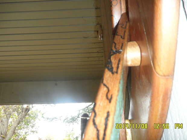 Los insertos de latón hacen las vigas rectas extraíble para el transporte. Es un poco frágil montado. Luego fue a saltar mis medicamentos y terminar el pirograbado...