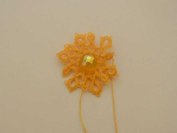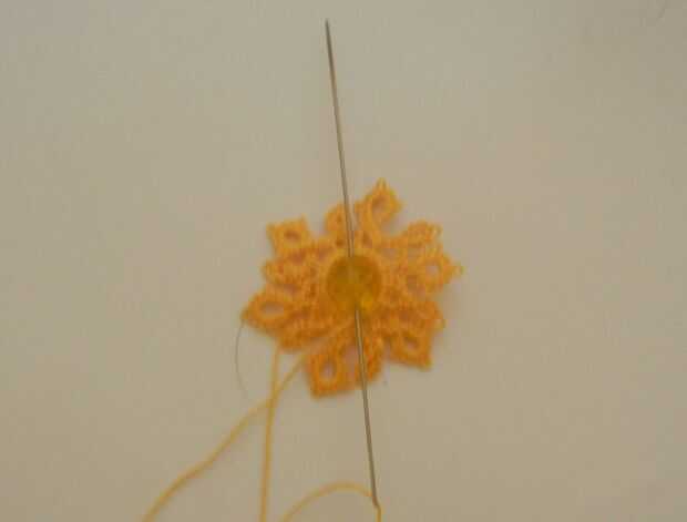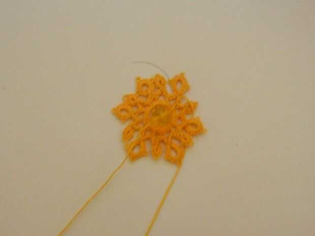 2. esconder la cola a través de las puntadas hasta que salte en el anillo central.