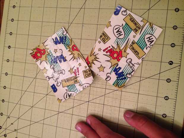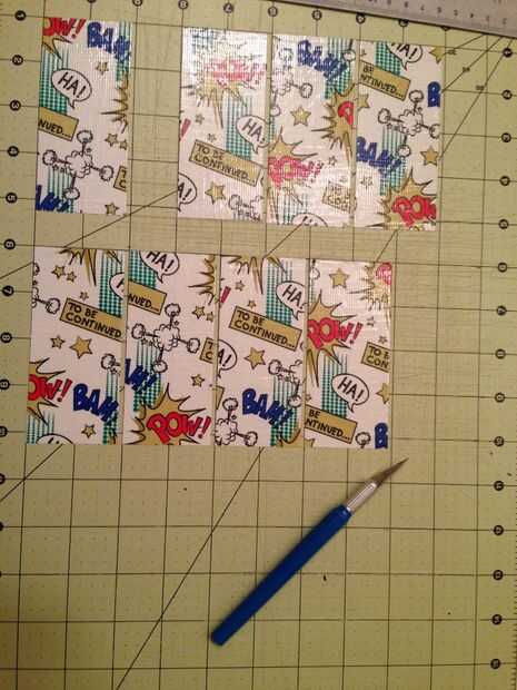 Cortar ocho 5,1 "x 1.88" pedazos de cinta adhesiva. Tome un pedazo de cinta de pato que sostiene el borde mide 5,1" de longitud y adherirla a otro pedazo de cinta del pato en su borde de medición 5,1". La última pieza creada a partir de las dos piezas separadas de la cinta del pato debe medir 5,1" de largo x 4" de altura. Repita este proceso con las restantes piezas cortadas 6, hasta las cuatro 4" se crean piezas de alto. Ahora toma dos de las cuatro piezas de pato cinta y se les adhieren pegajoso, junto lado a lado pegajoso. Hacer lo mismo con los dos restantes 4" piezas altas.