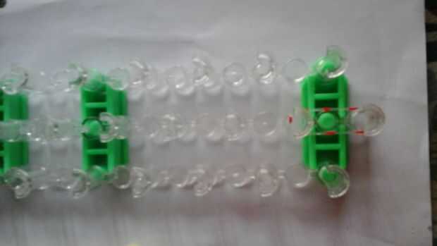 he modificado este video tutorial para crear una pulsera bigote! ¡ Disfrute!Paso 1: Se necesita: una tira de las clavijas de un telar del arco iris, dos colores de bandas (mina son de color rojo para las bandas de encuadre y plata para las bandas de