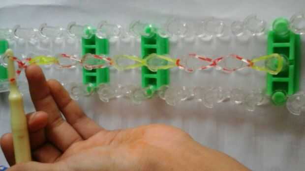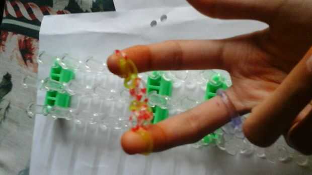 Después de que quite las bandas cuidadosamente de las clavijas como se muestra en la foto de arriba