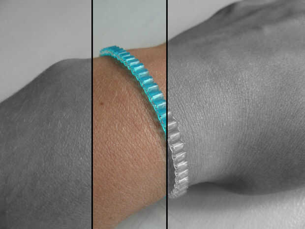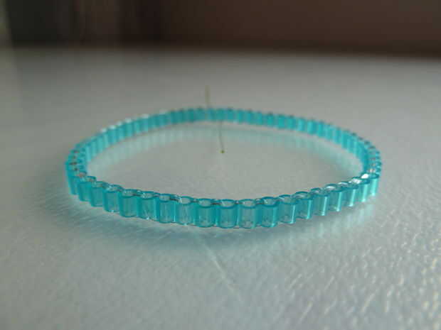 Esta pulsera es una variación de mi perler rebordea la pulsera. Este fue mi quinto instructable, publicado hace 2,5 años. Mirando hacia atrás y haciendo una variación fue muy divertido hacerlo. En vez de hacer dos filas como lo hice allí, sólo hice una fila. A pesar de que usted termina con una pulsera más pequeña, delicater, necesita acerca de la misma longitud de la cuerda elástica.