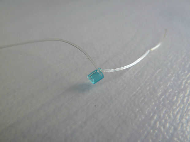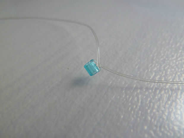 Comience agregando el grano para el elástico y hacer un nudo. Dejar un poco de cuerda para anudar más adelante. Una vez se tiró firmemente, hacer una segunda para garantizar el primer nudo. Deslice la parte anudada en la parte superior del grano.