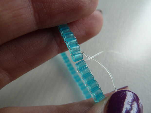 perlas pulsera tejidaPaso 1: ingredientes perlas de vidrio 12 pasador de seguridad3 banda de gomaPaso 2: Tejer perlas para pernos Paso 3: Tejer pasadores junto con una banda de caucho Paso 4: atar Paso 5: finalización