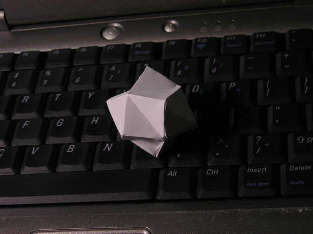 Primero descubrí la forma de octaedro estrellado cuando sólo al azar me conexión de módulos de cubos de origami. Cumplí esta forma en estos pequeños colgantes. Después de hacer esto, yo seguí doblando octaedros estrellados, simplemente porque me enca