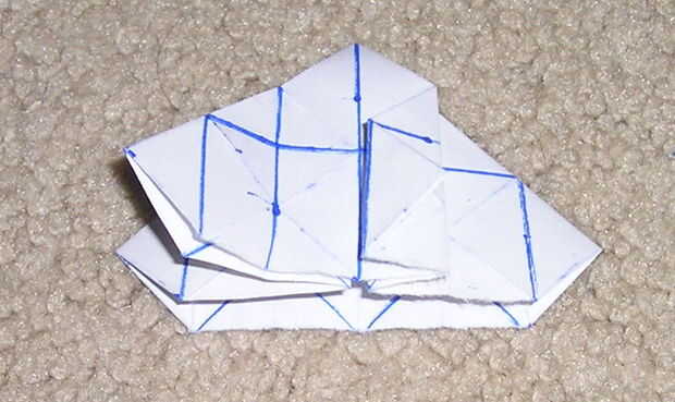 Coloque los triángulos visibles debajo de los triángulos que dobla sólo en los triángulos que acaba doblado.