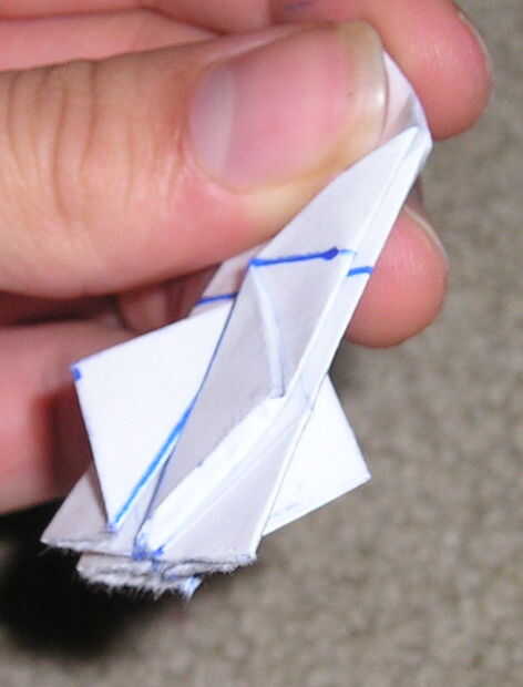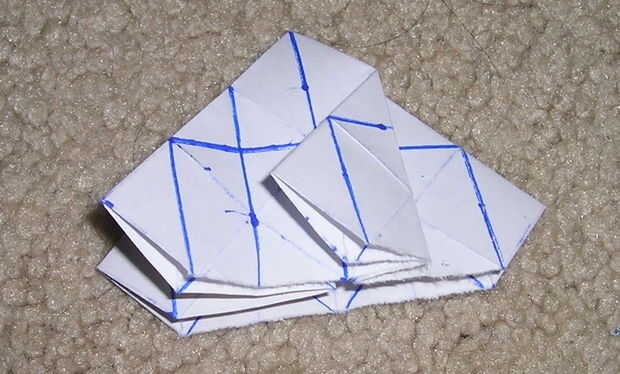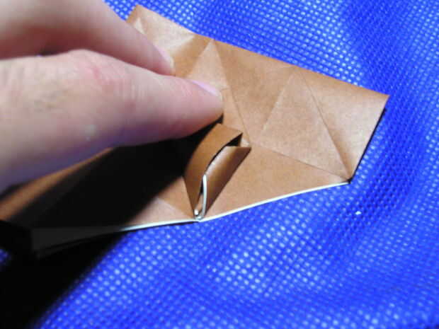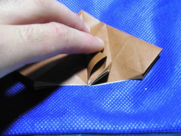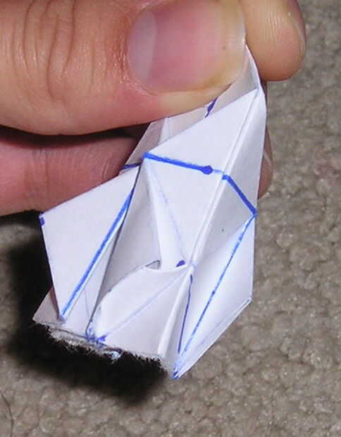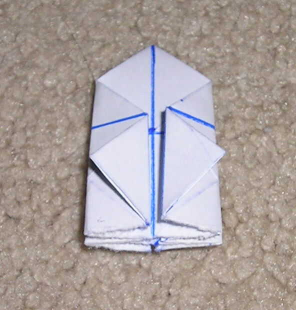 P10103700 me muestra plegables a los pliegues marcados en la primera foto y plegables el pequeño triángulo a lo largo del pliegue que ya está allí, como se muestra en la segunda.