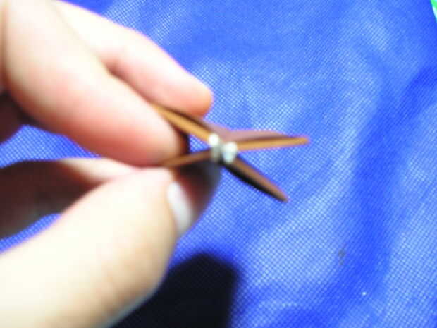 Agarrar el modelo en ambos lados para separar las aletas y soplar en el agujero para inflarla.