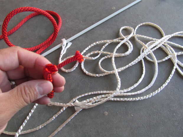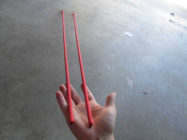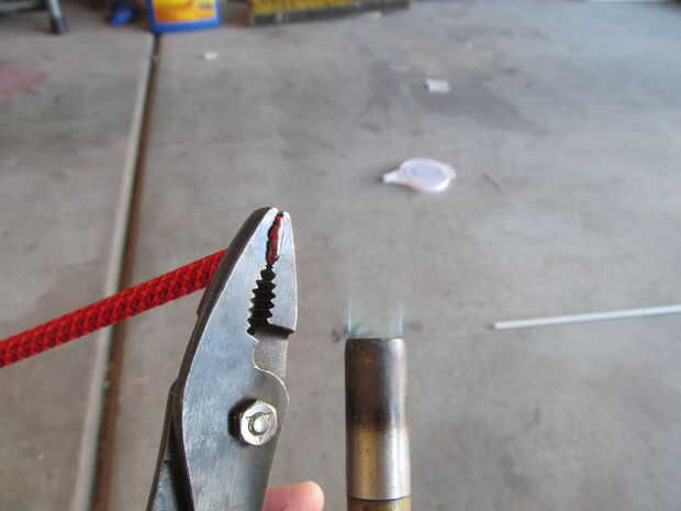 Varilla de vidrio de fibra es fuerte y flexible que es una necesidad para este proyecto. Problema es que haz invisibles astillas de entregárselo. Para arreglar eso destruyó 3/8" cuerda y usa la vaina para cubrir la varilla. Después que sellé que prensa y fusión de los extremos. Mejor aún, ahora encajan cómodamente en los tubos que iré en.