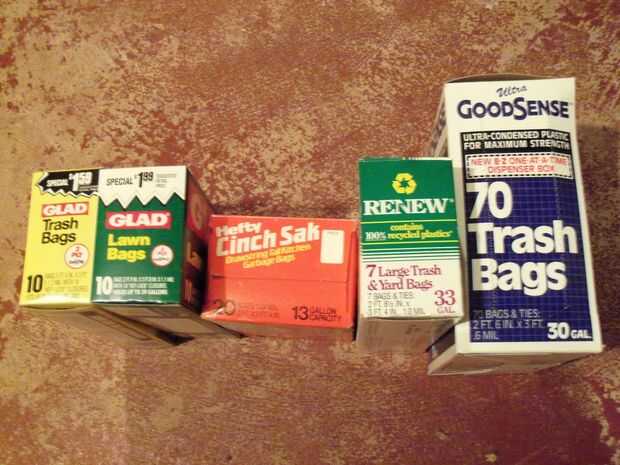 1. bolsas de basura - deben ser finas, utilicé 0,6 mil pero el más fino mejor. Más bolsos de calidad son pesados, por lo menos 1.0 milipulgadas. Queremos que las bolsas O barato.