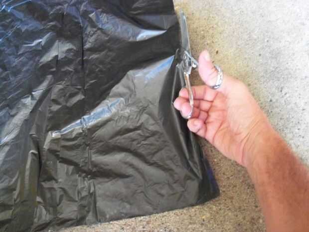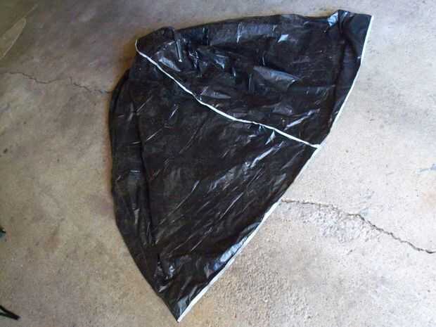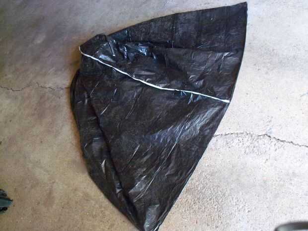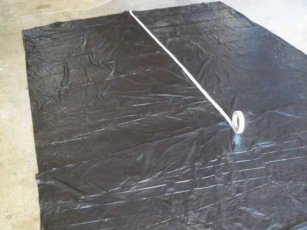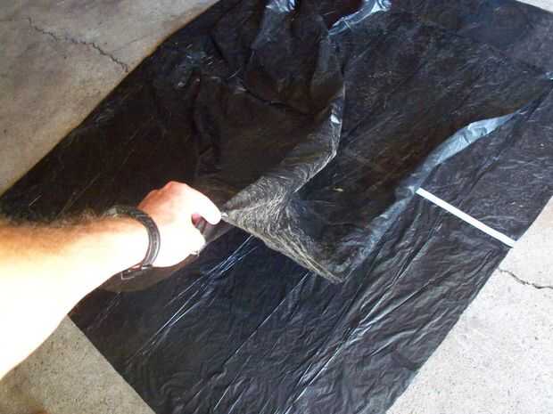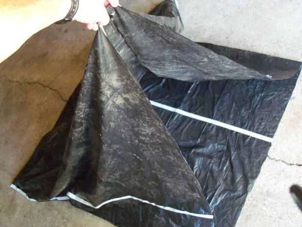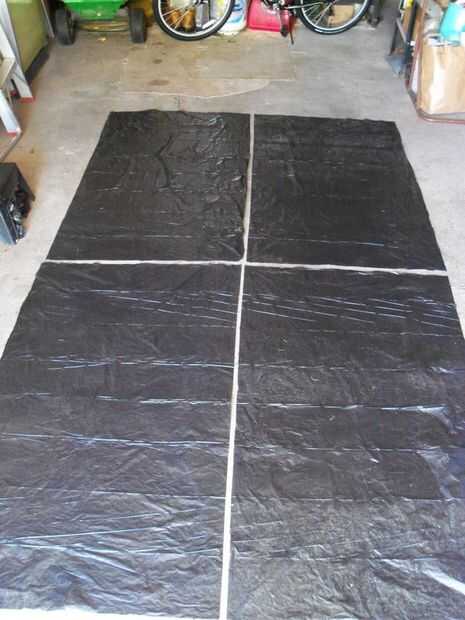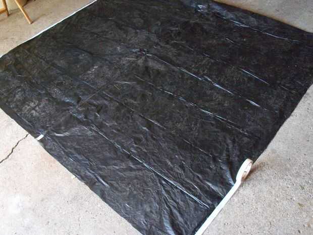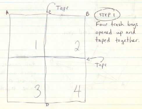 Haz 4 bolsas y cortarlas abierto cortando la parte inferior y un lado. A desplegar luego a un rectángulo grande. Colocar los 4 abrió bolsas como en el diagrama de imagen. Cinta adhesiva para formar un rectángulo enorme.