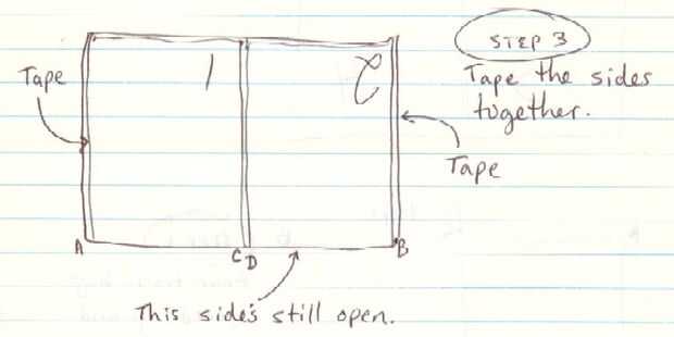 Doblar el rectángulo enorme entonces los dos lados cerrados de la cinta. Ahora tiene sólo la parte inferior untaped y abierta.