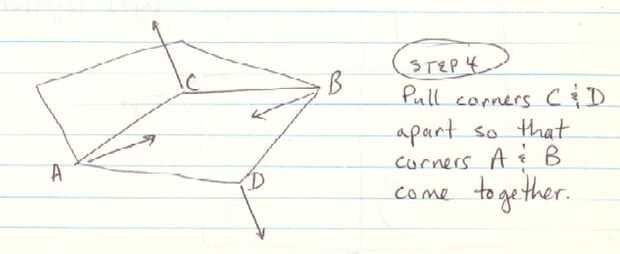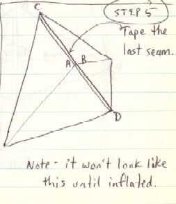 Sostenga el centro de la costura abierta y sáquela abierto para que los puntos marcados A y B en el diagrama vienen juntos. Cinta y sellar la última costura abierta.