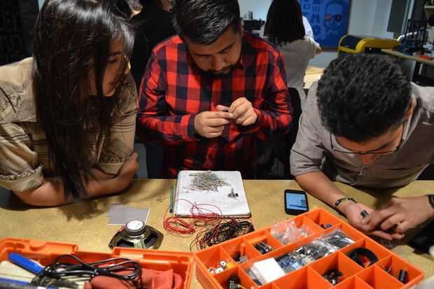 El Boombox maleta es una maleta vintage convertida en un boombox, con dos subwoofers y cuatro tweeters. El sistema entero es alimentado por dos baterías de plomo conectadas a un controlador de carga, por lo que el boombox se puede cargar mediante una