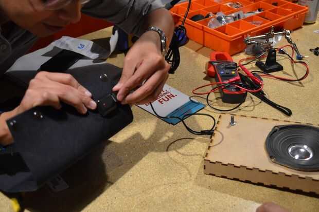 Ahora conectamos el panel de brownd perro gadgets al circuito y preguntareis las interferencias subiendole al volumen. Es normal que se escuche ruido y hasta por ejemplo alguna estación de radio, esto puede ser evitado con capacitores y otros componentes reduzcan ruidos.