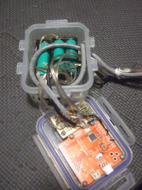 Determinar el tamaño del perfboard que necesita y cortarlo. Cuanto más grande mejor, como usted tendrá más espacio para futz con, pero a veces eres un poco lleno de espacio. El pegamento abajo y adjuntar el paquete de baterías y montar el tablero con los separadores.