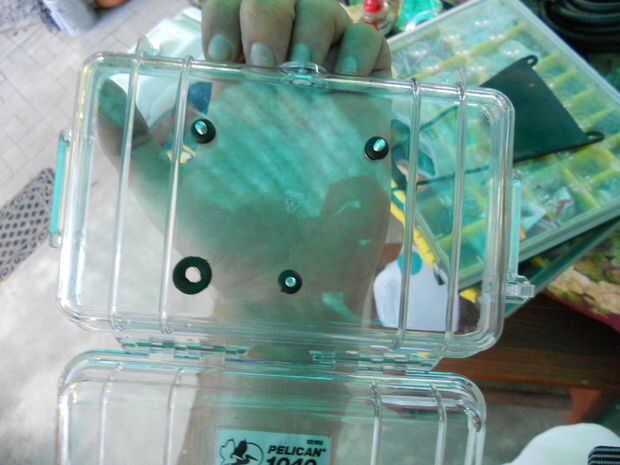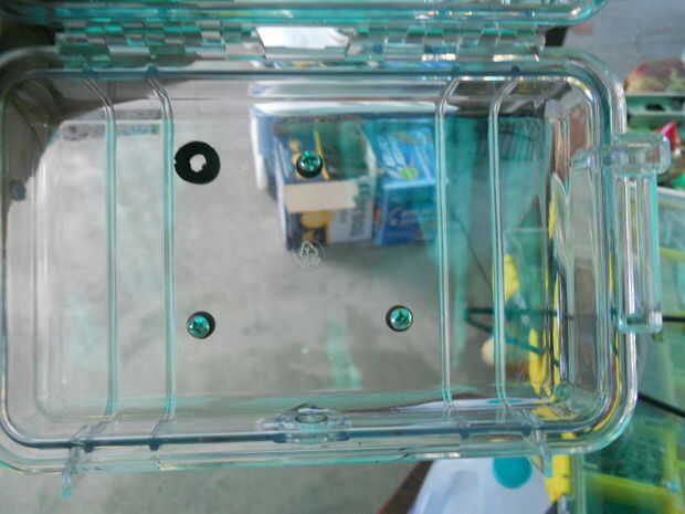 Decidí que el killswitch para todo el sistema debe ser en el lado de la caja. Tomé el interruptor y usa un sizer de broca de taladro para encontrar la broca más pequeña posible para la base del interruptor de cambio a pasar. Luego perforé la caja en el lugar que yo quería el conmutador en USA silicona para fijarlo a la caja.