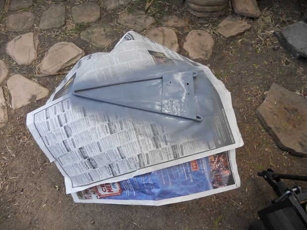 Montara el cuadro como una bolsa de sillín mini al lado de mi estante de equipaje. Para ello tuve que soldar una placa de acero sobre los soportes de la canasta de equipaje. Después de la pintura el soporte de acero, me coloca la caja sobre la placa de acero y taladrar tres agujeros del mismo tamaño que los pernos que se va a celebrar. Entre la placa de acero y la caja, coloqué un ojal de goma en los tornillos para la caja de vibraciones violentas del amortiguador.