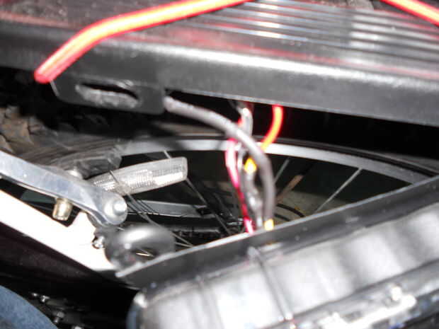 Sólo tienes que seguir el esquema para el cableado. Sólo asegúrese de que el cable sea suficientemente largo para llegar a donde necesita ir. Es mejor usar conectores de bala para conectar la luz de freno a la caja de la batería, pero no tengo ninguno así que a soldar los cables juntos y utilizados para cubrir las conexiones de la tubería del encogimiento del calor. Esto no es una buena idea porque conexiones soldadas pueden aflojarse debido a la vibración en montar esta bicicleta.