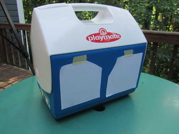 Una dremel funciona bien para cortar a través del refrigerador, ya que es espuma y plástico blando. Al cortar un patrón, me gusta dibujar la forma de un pedazo de papel y goma lo cemento a la pieza. Esto hace fácil de seguir las líneas como se corta.