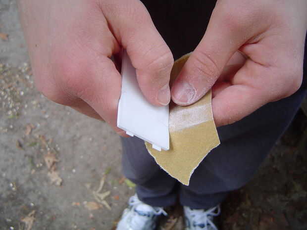 Hacer esto fuera porque crea un montón de pequeñas partículas de plástico que flotan en el aire y probablemente no es lo mejor para los pulmones.