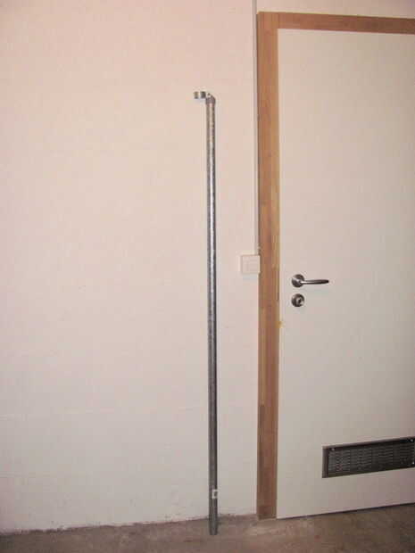 Se trata de un poste de hierro galvanizado, con un pedazo de plástico fijación con una llave en su parte superior. El diámetro es similar a las usadas en cercas.