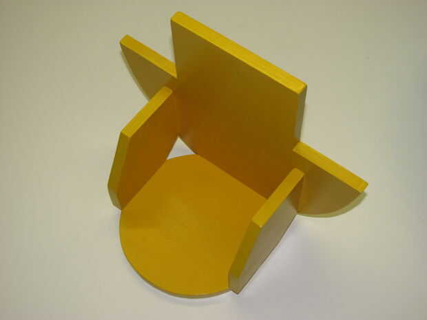Después de ensamblar con espigas y tornillos, apliqué alguna cartilla de madera, luego varias capas de pintura amarilla.