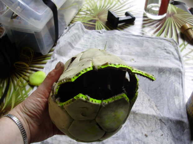 El objetivo es hacer una "boca" que se ve convenientemente Mieda. La bola que usa había formas hexágono y Pentágono podría cortar una boca que parecía un poco los dientes enormes.