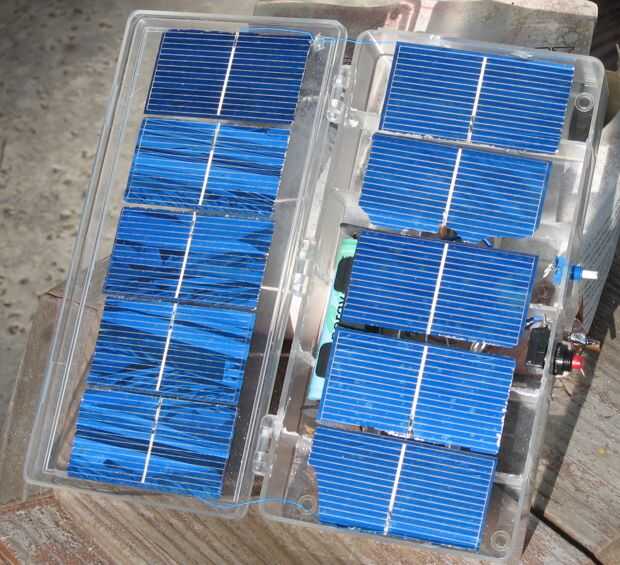 Las células solares vino en 6 "x 3" piezas, por lo que tuve que cortar verticalmente y horizontalmente obtener el 3 "x 1-1/2" piezas sea necesario. Son muy duras y muy frágiles, lo que les hace un dolor real corte, explicando los bordes irregulares. Yo estoy mejor sin embargo.