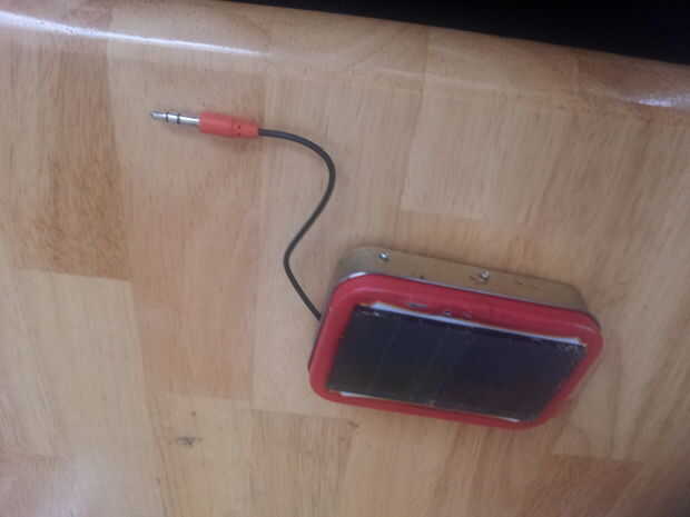 pensé que esto haría que un proyecto genial porque es un dispositivo de me y el uso diario. donde yo trabajo no puedo realmente escuchar auriculares pero este booster amplificador pequeño es el dispositivo de medios poco perfecto para jugar qué elegir a través de mi lista de aplicaciones de dispositivos móviles. metí el primer Consejo que ha sacado. su bien aunque ahora tengo una plantilla de siete dólares. la idea es que los paneles solares siempre proporcionará una carga a las baterías. el amplificador y el altavoz me dan mi música en un nivel que puedo escuchar en mi estación sin obstruir mi audiencia y sin perturbar a los demás. y cuando lo obtiene de batería baja en mi dispositivo móvil conecto mi cable de teléfono al puerto USB en el lado y volver a carga mi batería de los teléfonos. Este proyecto recargará consistentemente que hay suficiente luz para crear corriente. Recuerde que cuanto más brillante la luz más rápido la carga. estimar sustituye la cantidad de energía se drene consistentemente. y un cargo de días completos cuando im off ayuda demasiado.