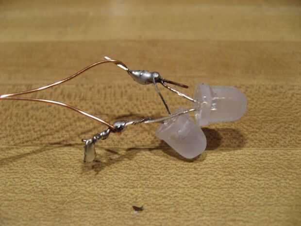 A continuación, conectar las patas positivas de su LED a un alambre y los negativos a otro.