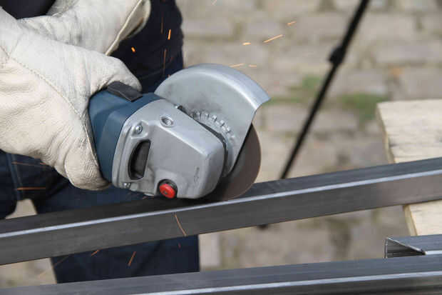 Cortar a una longitud de tubos cuadrados de 2300 m m 4: un corte adecuado y un corte de 45°.