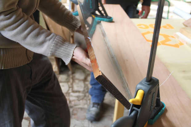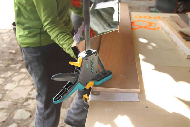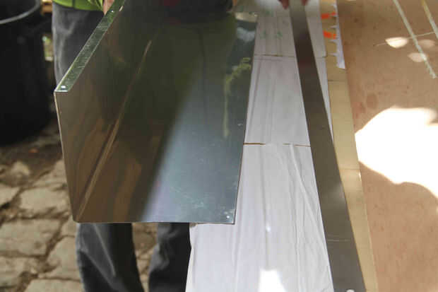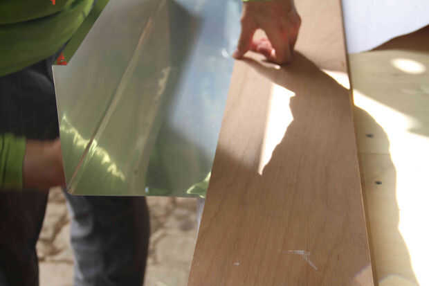 Proponemos un método que utiliza herramientas sencillas. Una prensa de plegado puede hacer el trabajo Si pliega uniformemente el espejo. Al hacer el plegable manualmente, es más fácil trabajar en un equipo de dos personas para doblar correctamente el espejo.