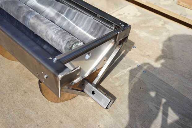 Corte del plano con una longitud de 2 m. la perforación según el plan: 10 agujeros con un diámetro de 4 mm, 10 mm de los bordes, 220 mm la distancia entre ellos. Molino de la entrada del agujero con un taladro de 8 mm de diámetro. Es importante que el tornillo con la cabeza plana cubre la superficie de la vivienda, sin superarlo. Esta es la posición que crea la rigidez adecuada al receptor, planteando una distancia exacta entre los soportes de suspensión. Atención para perforar de la misma manera los dos pisos, para que los soportes son perpendiculares al eje del receptor: ambos con un taladro de columna taladro.
