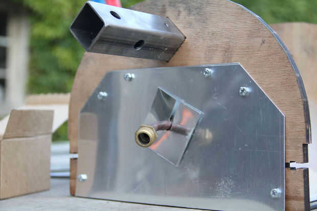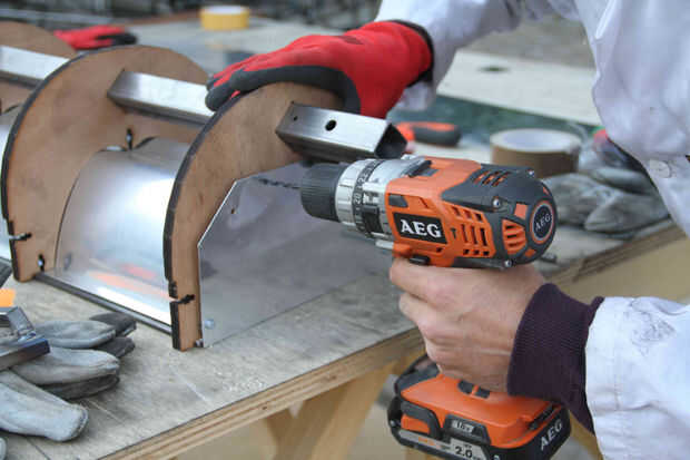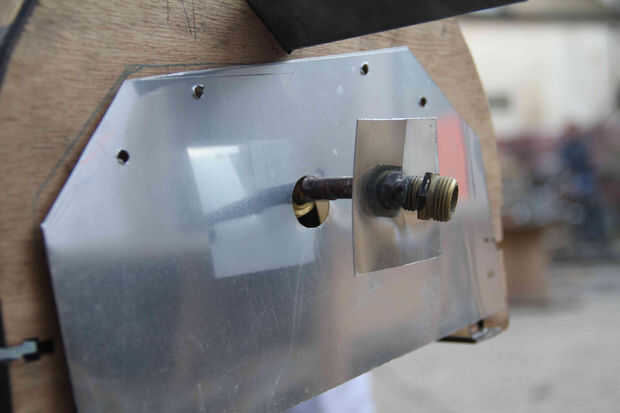 Perfore agujeros de 4 mm de diámetro: en la parte inferior 18 mm desde el borde inferior, 8 mm desde el borde lateral, en la superior parte 40 mm desde la parte y 10 mm del borde superior. Perfore un orificio de centrado tiene un diámetro de 20 mm, correspondiente a la altura de la salida del tubo absorbedor: la altura de la boquilla es diferente en cada extremidad (entre la entrada de agua y la salida de vapor). Se aconseja para medir la posición exacta de la posición real del tubo absorbedor.