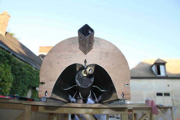 Mejora: en lugar de recortar la hoja de 125 mm, corte en 140 mm y doblar a 90 º hacia afuera, para controlar al cruce de la extremidad del campo espejo. De esta manera, podemos prever un vaso largo con 3 cm para cerrar mejor la cavidad de los bordes.