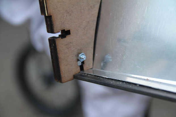 Corte una hoja de espejo como se indica en la figura (230 x 125 mm, ángulos de la parte inferior de 40mm).