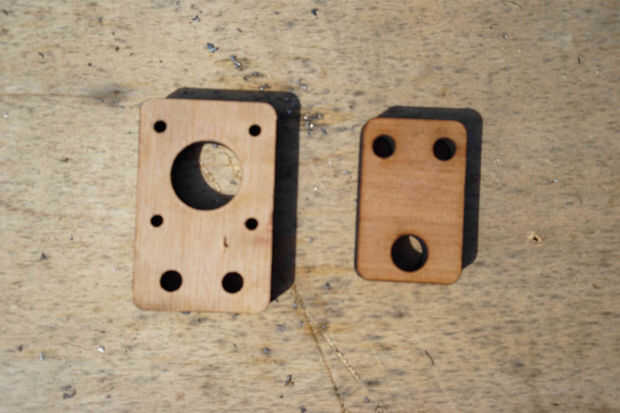 Corte con el láser cortador 20 soporte de madera las piezas para los motores y 40 piezas de soporte de madera para las hachas del espejo. Es necesarios 40 piezas con el fin de asegurar una pieza a cada extremidad.